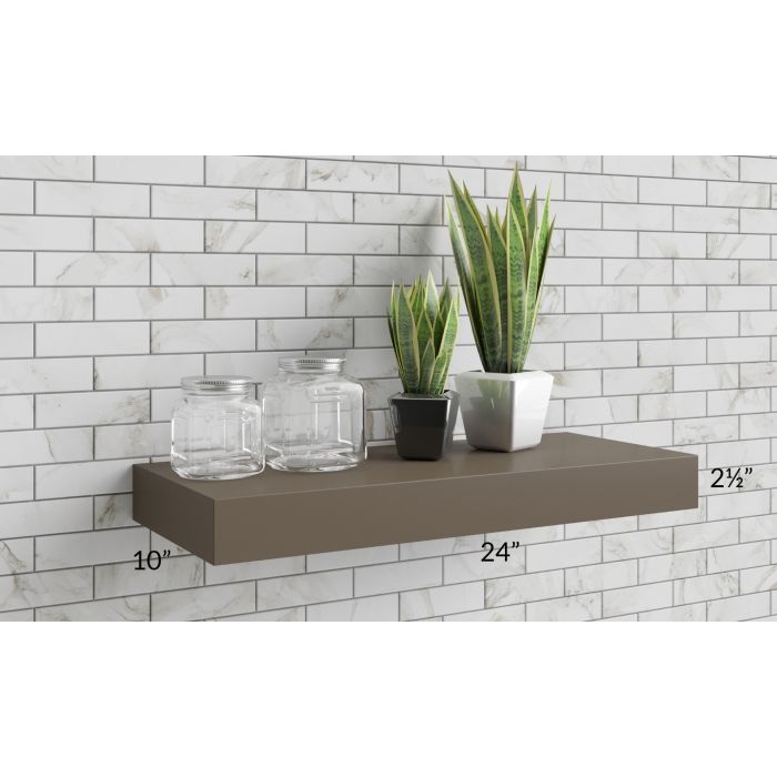 Floating shelf that will include the mounting brackets and hardware. The weight limit is 15 lbs/linear foot as long as the proper installation instructions are followed (instructions will be included with the shelf).