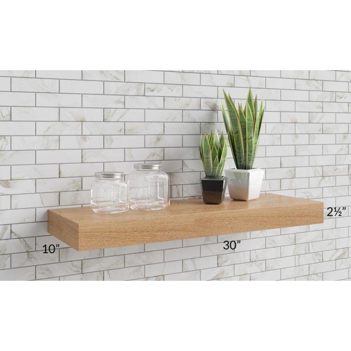 Floating shelf that will include the mounting brackets and hardware. The weight limit is 15 lbs/linear foot as long as the proper installation instructions are followed (instructions will be included with the shelf).