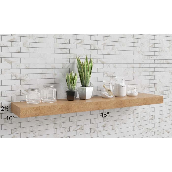 Floating shelf that will include the mounting brackets and hardware. The weight limit is 15 lbs/linear foot as long as the proper installation instructions are followed (instructions will be included with the shelf).