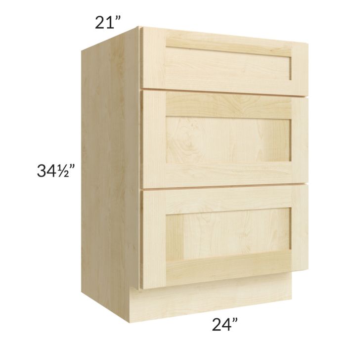 Unfinished Shaker 24" 3-Drawer Vanity Base Cabinet