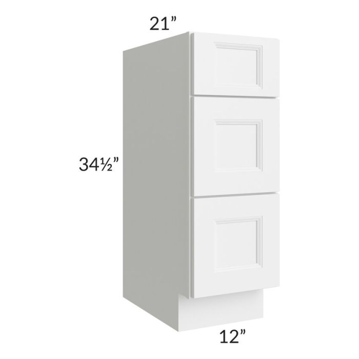 Union White 12" Vanity 3-Drawer Base Cabinet
