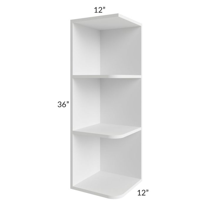 Open end wall cabinet with 3 shelves. Shelves are not adjustable, and bottom panel will be curved at the edge.