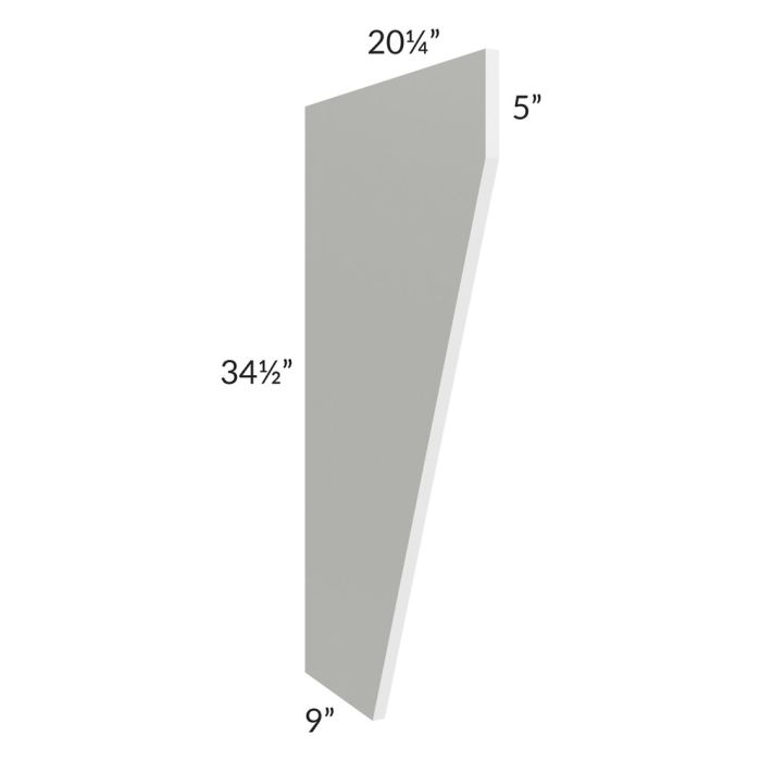 Vanity desk leg that is 20 1/4" deep on top and 9" deep on bottom. Front flat section comes down 5" before the left slopes inward. The leg will have wood edge banding. Made of 3/4" thick veneered plywood.