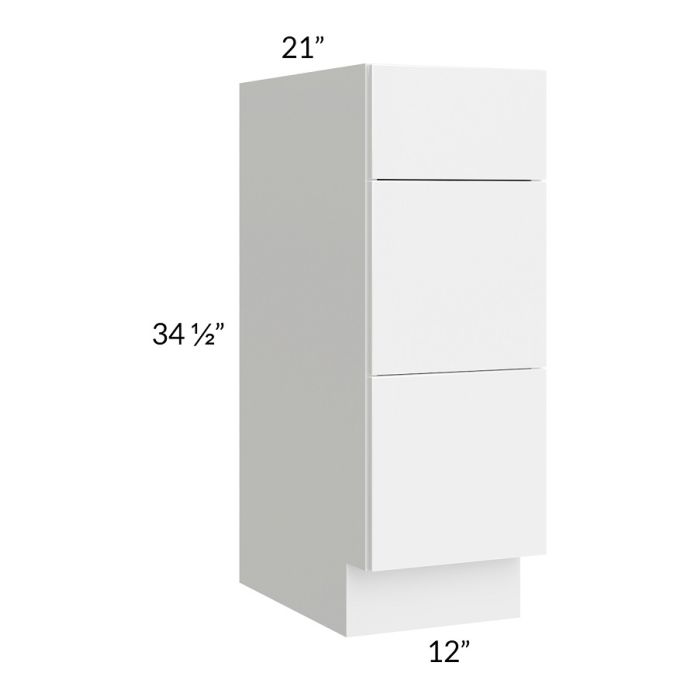Venetian White Gloss 12" 3-Drawer Vanity Base Cabinet