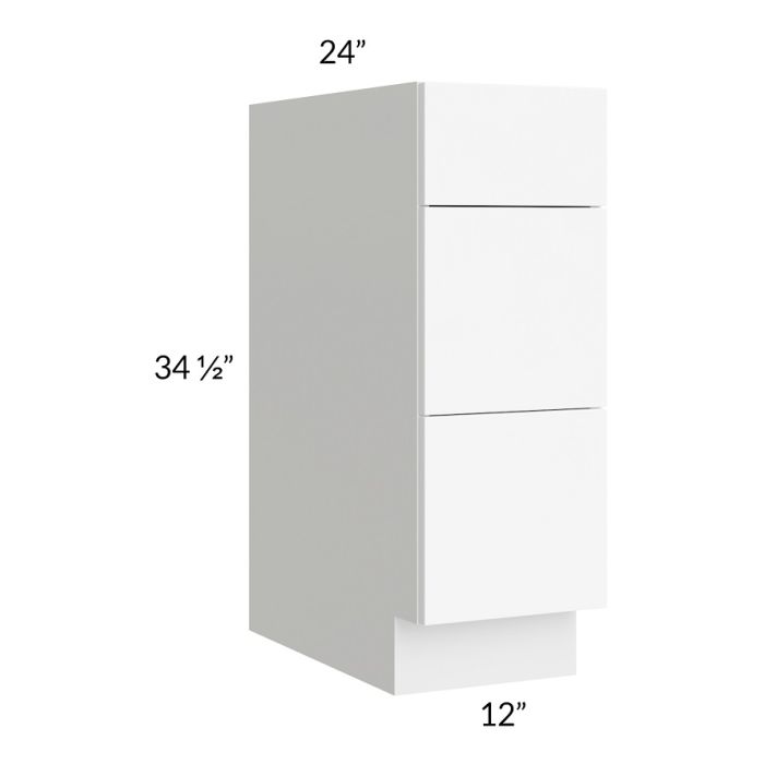 Venetian White Matte 12" 3-Drawer Base Cabinet