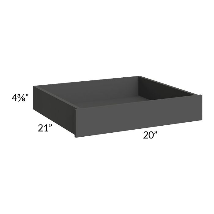 Low height roll out tray to be used in a 24" base or pantry cabinet (cannot be used with vanities, which have a shallower depth). There will be a front panel on the roll out that will be 1/2" wider than the drawer box.