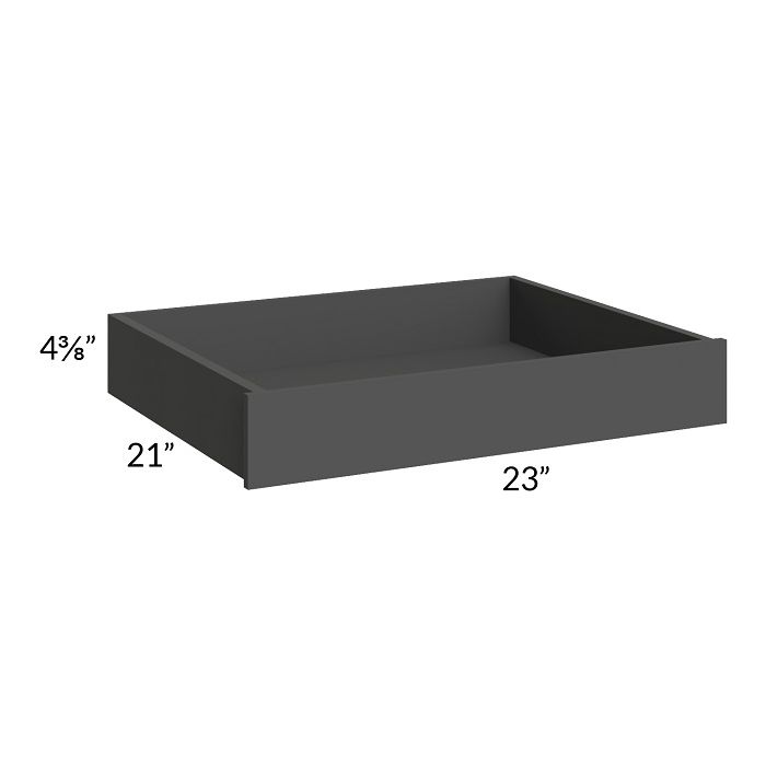 Low height roll out tray to be used in a 27" base cabinet (cannot be used with vanities, which have a shallower depth). There will be a front panel on the roll out that will be 1/2" wider than the drawer box.