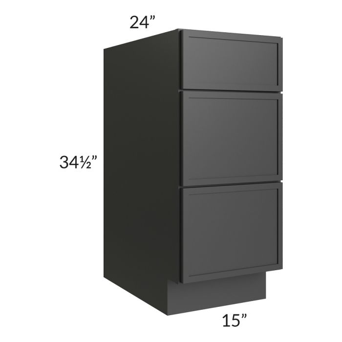 3 drawer base cabinet. Top drawer front is 6-3/4" high, middle and bottom drawer fronts are 11-1/4" high.