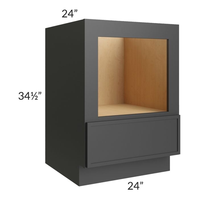 Base microwave cabinet with (1) 9" high drawer on bottom. Opening will be 18"W x 12-1/2"H. It can be widened on site up to 22" W x 19"H, if needed. The space from the shelf to the top of the cabinet is 20".