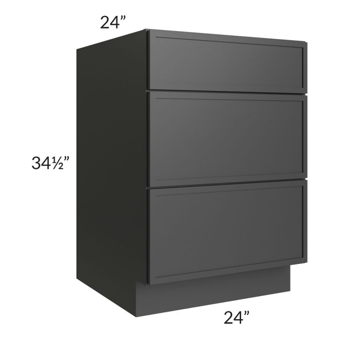 3 drawer base cabinet. Top drawer front is 6-3/4" high, middle and bottom drawer fronts are 11-1/4" high.
