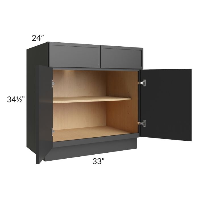 2 door base cabinet with 1 three quarter depth adjustable shelf and 2 drawers.