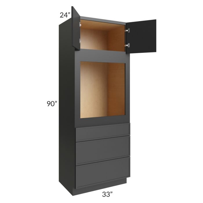 Oven cabinet with two 17-1/2" high doors on top, and 1, 2 or 3 drawers on bottom. Single ovens will have 3 drawers, Combo ovens will have 2 drawers and Double ovens will have 1 drawer. There will be a fixed shelf located above the uppermost drawer for each oven option.
