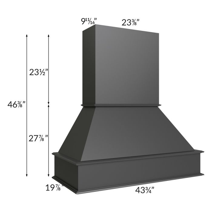 Signature style wood hood that comes with a stainless steel liner. The chimney height of 23-1/2" can be trimmed on site, if needed. Blower is not included and would need to be purchased separately. The chimney depth is 9-11/16" and the width is 23-3/8".