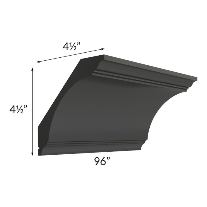 Large cove crown molding. When installed, it will be 4-1/2" high and will stick out from the cabinet 4-1/2".