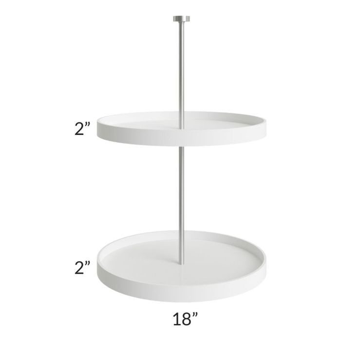 Lazy susan accessory for a 24x30 diagonal wall cabinet. It will have an adjustable metal post and two 18" plastic trays. Trays will be 2" high. ***Please specify which cabinet to install this item in under the order comments when checking out or it will ship loose.***