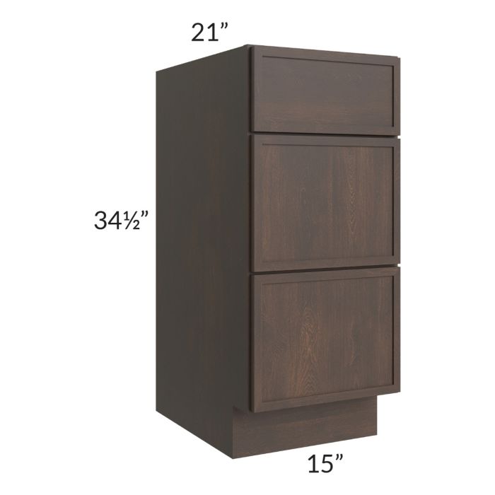 Description / Vienna Kona Brown 15" Vanity 3-Drawer Base Cabinet