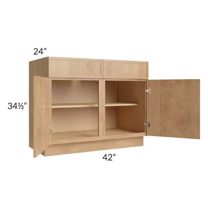 2 door base cabinet with 1 three quarter depth adjustable shelf and 2 drawers. This cabinet will have a 2-5/8" center stile.