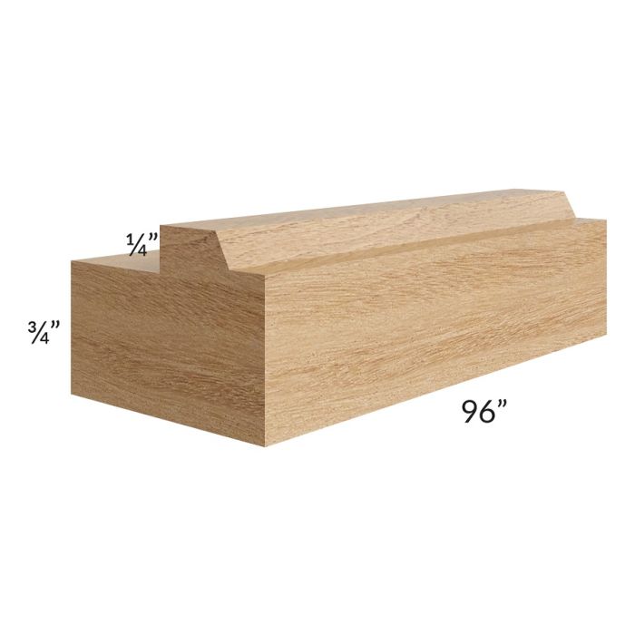 Light rail molding, overall depth is 1-1/2", the flat part that will install under the wall cabinets is 3/4" deep. The lip that will extend over the front of the wall cabinet is 1/4" high.