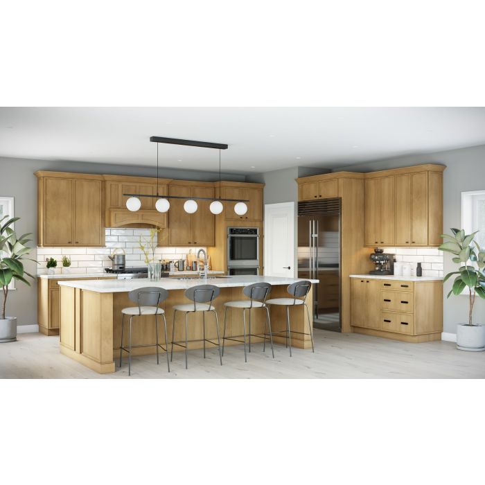 The transitional Vienna collection provides a contemporary twist on traditional cabinetry with its narrow rail moldings, distinctive detail, and classic characteristics. The slightly inset door style coordinates flawlessly with any home's decor. The subtle, yet stunning, Timber finish gives an underrated elegance and elevates any room.