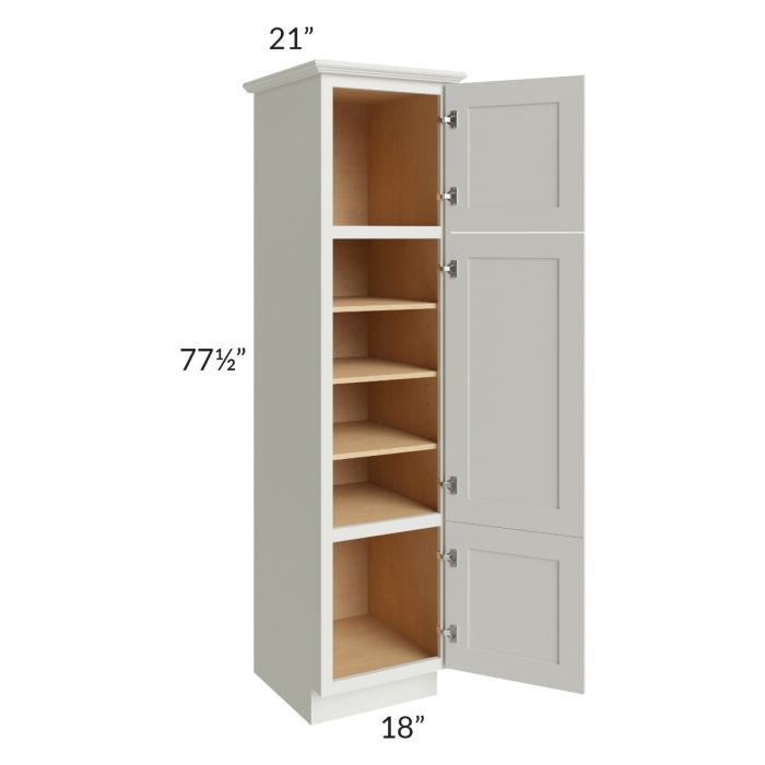 Linen cabinet with (3) shelves and (3) doors. The top and bottom doors are 18-3/8” high and the middle door is 35-5/8” high.