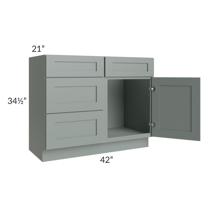 Woodland Green Shaker 42" Vanity Sink Base Cabinet (Drawers on Left)