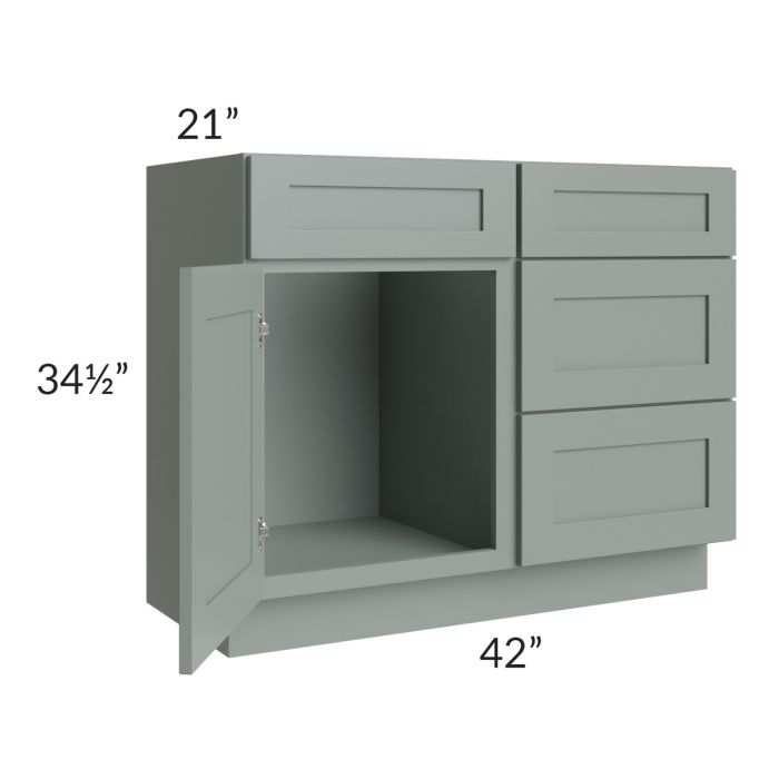 Woodland Green Shaker 42" Vanity Sink Base Cabinet (Drawers on Right)